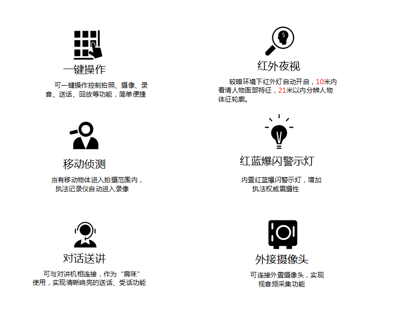 EbpayDSJ-200F 执法仪(法院/政府/城管)拍摄像素高达5000万,广角镜头137,拍摄画面精细而全面,大容量电池支持陆续在工作12小时不断电